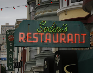 Our third day at the bay was the most challenging for my broken foot. We hiked from the pier over some rambling steps up Telegraph Hill to Coit tower. Our climb wound past some great homes with porches looking out over the bay and gardens crammed with lavender, roses, holly, orange and lemon trees. I sat with Dixie while Chris went up the 210' art deco tower which provided "coit" the amazing view all around San Francisco. I chose to enjoy the amazing series of floor to ceiling murals painted in the 1930's around the interior walls at the tower's base. They depict scenes of life in California before the depression such as city scenes of markets and bakeries, farming in the valley and the old fishing docks."Coit" fabulous!