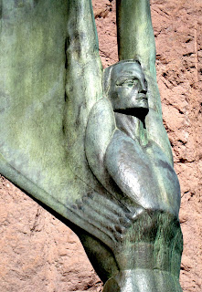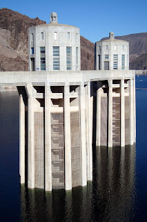 Near Vegas, is the Hoover Dam, amazing for its scale, technology and art deco detail. We spent an enjoyable day exploring the dam and the vistas across from it up the canyon to the new super bridge and down over Lake Mead. Dixie sent a flock of pure white cranes soaring as she charged at Lake Mead for some stick chasing. A hearty number of Marathoners plodded across the desert seeking out the finish line.