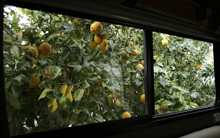 Drove south for a 3 night stay at Oasis Palms RV was refreshing and relaxing. Dixie had green grass to lie on and we enjoyed drinks by the fountain and pond. Formerly an orchard, the motor homes were all parked beside lemon, orange or grapefruit trees. We had our daily fill of citrus and stocked up for the week. Palm Springs may have its share of glitterati but it remains a lovely oasis of homes, golf courses(with real grass), great restaurants, shops and museums and gardens packed with luscious petals. A film festival was on during our visit and although we encountered no famous folks, we did see many "sidewalk stars" with Hollywood heroes like Dale Evans and Roy Rogers, Bob Hope and Dinah Shore! The Palm Springs Art Museum has a great permanent collection and current shows included Contemporary Glass and wonderful retrospective of Andrew Wyeth drawings, watercolours and egg tempera masterpieces.