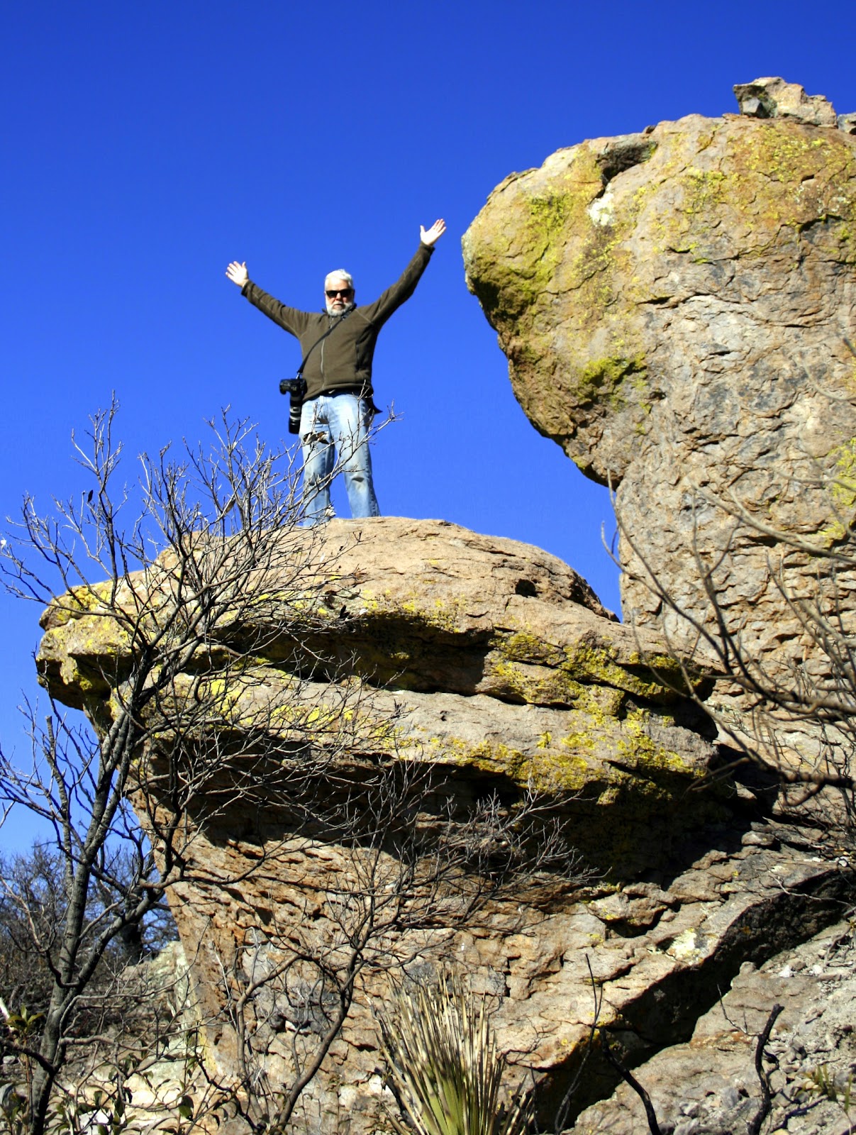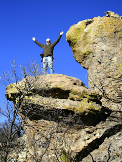 The wind has sculpted the trees as well as the rocks and most of the sandy coloured boulders are covered with Fresca-green lichen. Hiking the trails here was as thrilling as exploring the Grand Canyon. We had hoped to boon dock outside the park but the parking area seemed sketchy so we drove up to the cowboy town, Willcox for an overnight in an RV park.