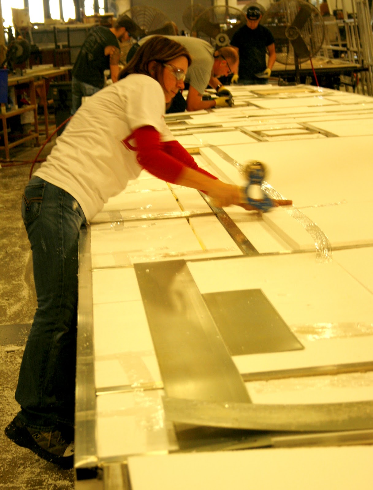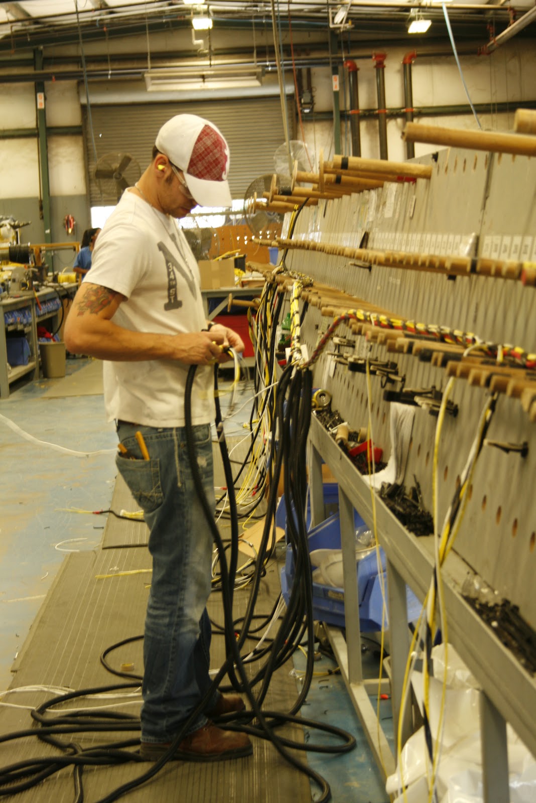 The town of Red Bay depends on Tiffin Company and customers. We had a couple of meals there, once at a 50's style drive-in and at "Swamp Johns", we had a southern catfish dinner. All Tiffin owners do the Factory Tour; some even watch their own rigs being produced! It was incredible walking through the various warehouses that build the cabinetry and counter tops and one type of chassis is constructed there but most are made at Freightliner. A huge warehouse performs the welding, another applies the paint and masks for details(other companies use decals) There are folks that work on insulation and windows while others attach exterior walls and doors to the floor, do plumbing or most amazingly; work on the electrical panels, so totally mind-blowing!!! It is a family company and as such quality control is high. As many problems as we've experienced, the customer service has always been top notch!