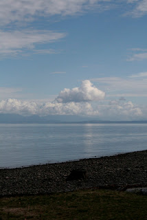 There are sounds and sights of a variety of seabirds, flying, floating, fighting. We also spot various sized seals....small "melon-heads" bobbing or large brown fellas (sea-lions) coasting and curving across the surface. Each day is so different, we are finding it difficult to leave. Tomorrow we will venture south for a couple of days, then head to the crashing waves of Vancouver Island's West Coast.