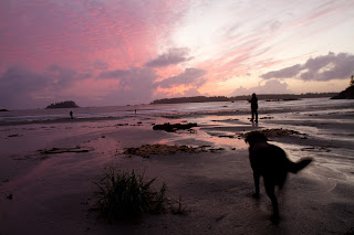 The pacific tides here, the last 2 evenings, have been amazing. At low tide the water is about 15 ft lower than high tide and the islands (above photo) about a quarter mile off shore, are exposed to the seabed. We wander out there and explore the face of the island and surrounding rocks for sea-life. Starfish, anemones, hermit crabs, mussels, barnacles and other unnamed creatures that cling to the rocks waiting for the tide to come back.