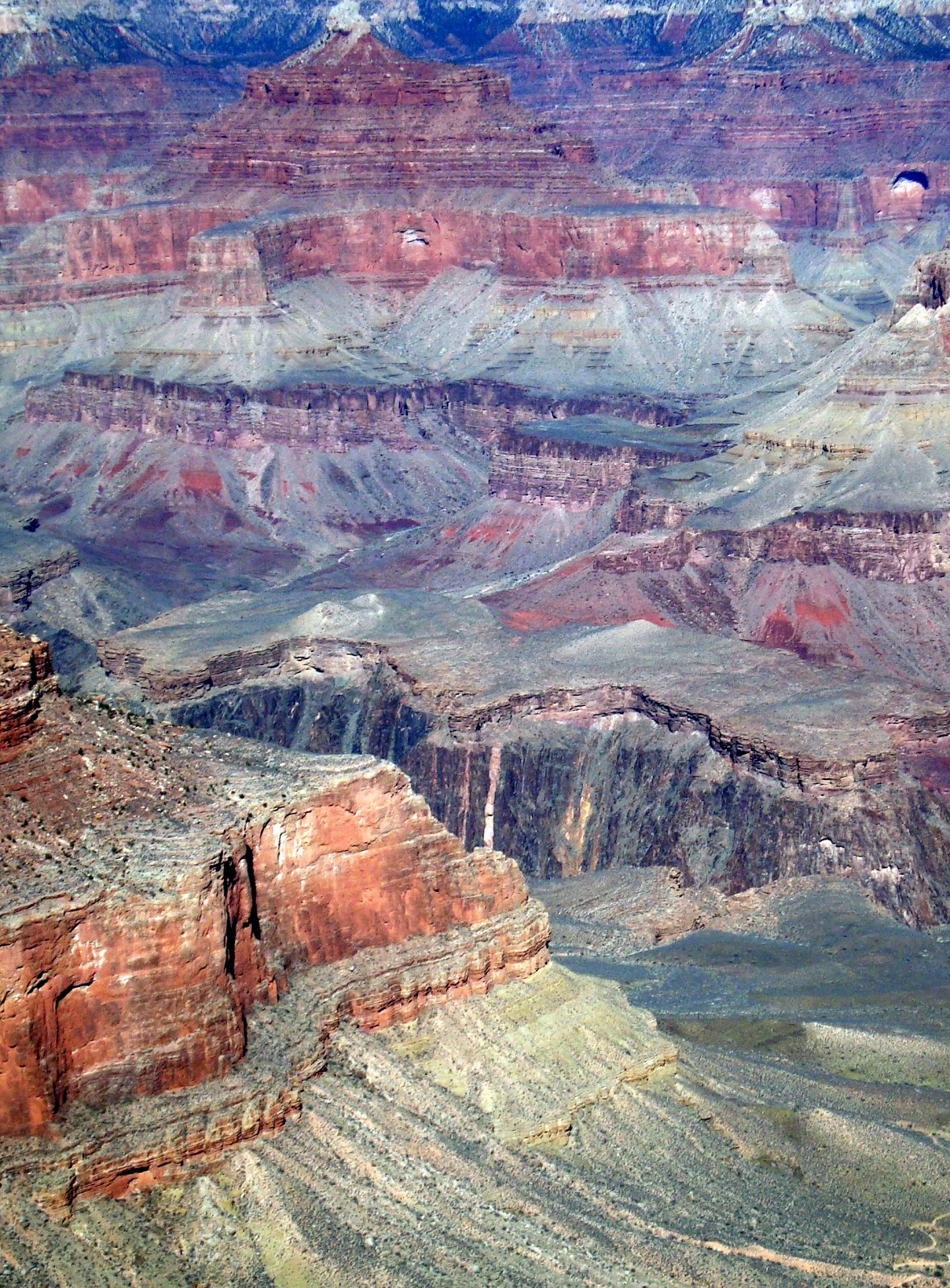 Our first awe-inspiring glance over the Canyon was Grand! I visited the north rim about forty years ago with my family and confirm the concept that the Canyon is Grand whenever and wherever you view it. We've often visited Niagara Falls, another natural wonder, yet the experience is unique and exhilarating each time! Everyone knows what the Grand Canyon looks like so there is no need to describe the view. However, what one experiences by actually standing on the edge, overlooking the vast Precambrian display, are the intrinsic and spiritual sensations that grip you to the core.