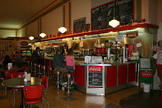 The sounds of bluegrass music drew us to an old Woolworth's Building. Inside, was a working soda fountain which provided a nostalgic blast from our teenage years. I had to challenge it's authenticity because there was no Honeydew machine! As well, there were a number of art displays of local potters, painters and photographers.