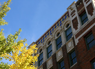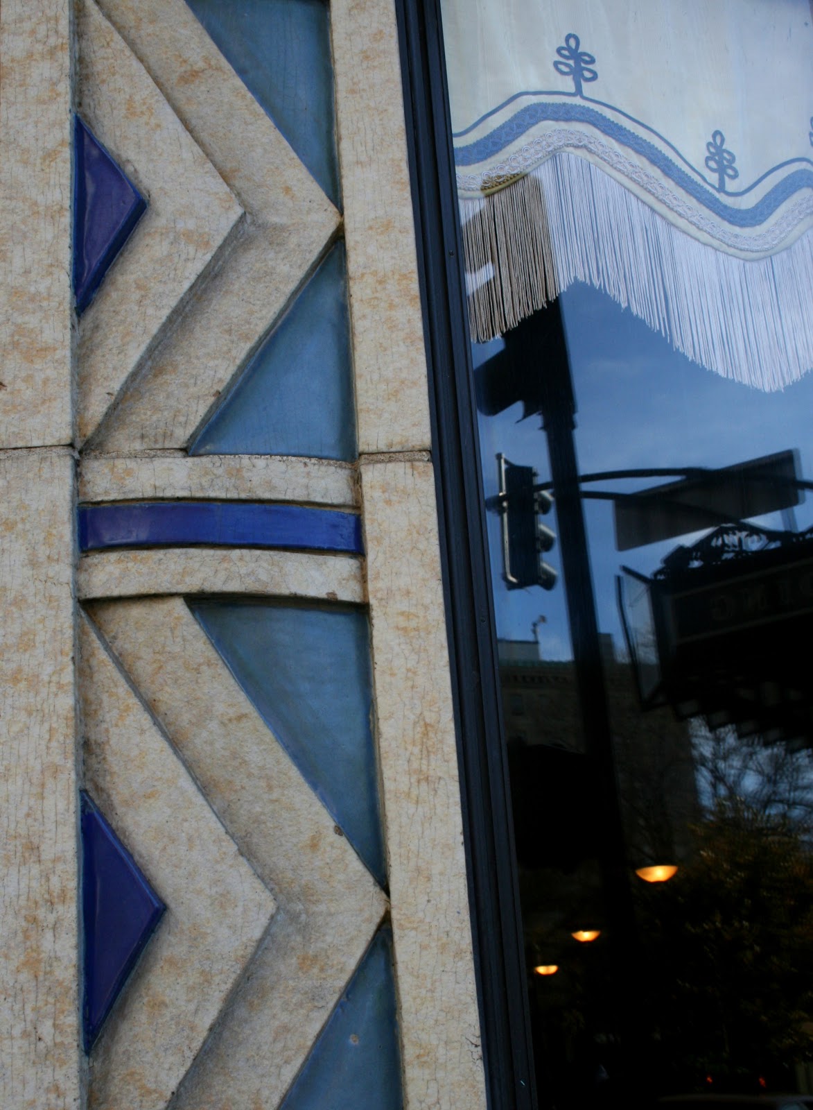 We drove into downtownAsheville where the historic Art Deco district has been restored. The architectural details, lamps and street sculptures were great. Early Girl southern food restaurant served up a hearty "dunch". My fried green tomatoes and goat cheese took the comfort food prize . The ric rac on the curtains was perfect for the retro restaurant interior.