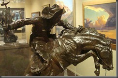 The Desert Caballeros Western Museum, is known as one of the finest museums in Arizona. We would attest to that after viewing its historic collection of paintings and sculptures and rooms displaying saddles, bridles, harnesses, cowboy and cowgirl clothing and memorabilia from western movies. There are some dioramas of western life as well as full scale home and country store. Their current exhibition was called “Cowgirl Up” and it showed an enormous number of high quality paintings and sculpture, all created by cowgirl artists. Amazing!