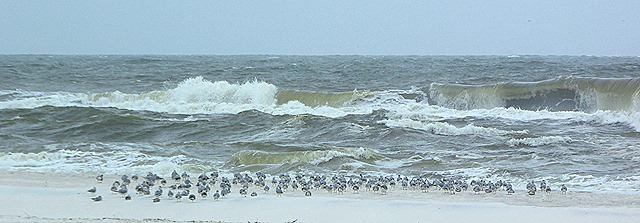 Regular readers will remember the beautiful beach beside Gulf Shores State Park and this time we observed the “March Breakers”. One cold day while we wore three layers, young people waded in the waves and sunbathed, determined to get their vacation’s worth of rays. Luckily there was a stretch of beach that was farther from the resorts for us to enjoy in peace. The weather warmed up and we enjoyed Orange Beach, Gulf of Mexico at different times of day, some with soothing waves listing in and other times violent waves pounding the shore. The soft powered sand, shells, dolphins and shore birds are alluring. The local Pier was a favourite for fisherfolk, site seers and pelicans.